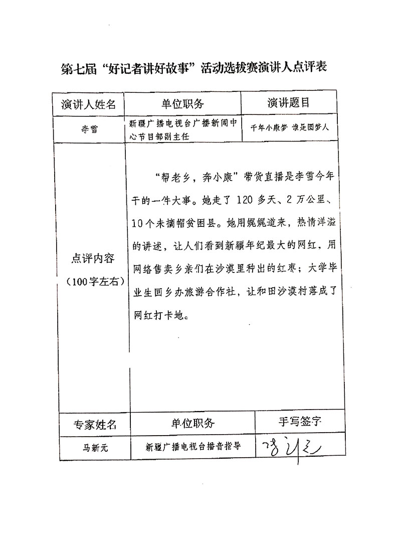 工作以來,在領(lǐng)導(dǎo)和同事的支持下,本人有幸多次重大主題宣傳報道:黨的十九大特別節(jié)目;2013、2020年自治區(qū)兩會特別報道、2014年全國兩會特別報道;第二次中央新疆工作座談會特別節(jié)目;第十三屆冬運(yùn)會特別節(jié)目。