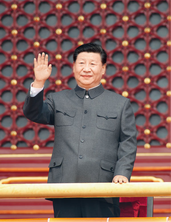 2019年10月1日,慶祝中華人民共和國成立70周年大會在北京天安門廣場隆重舉行。中共中央總書記、國家主席、中央軍委主席習近平發表重要講話并檢閱受閱部隊。這是習近平在天安門城樓上。 新華社記者 黃敬文/攝