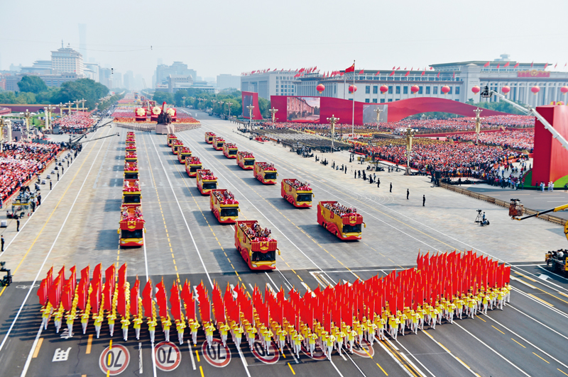 2019年10月1日上午,慶祝中華人民共和國成立70周年大會在北京天安門廣場隆重舉行。這是“致敬”方陣。 新華社記者 徐昱/攝