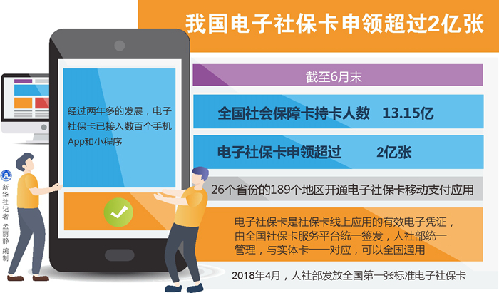新華社北京10月6日電(記者姜琳)人力資源和社會(huì)保障部近日發(fā)布的數(shù)據(jù)顯示,截至6月末,全國(guó)社會(huì)保障卡持卡人數(shù)13.15億,電子社保卡申領(lǐng)超過2億張,26個(gè)省份的189個(gè)地區(qū)開通電子社保卡移動(dòng)支付應(yīng)用。