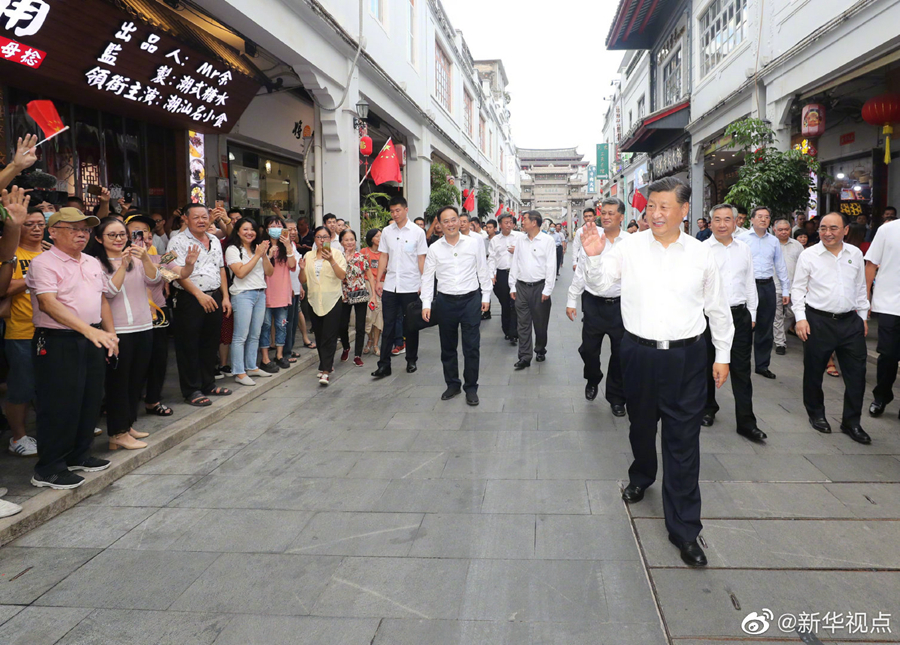 習近平總書記12日赴廣東考察調研。當天下午,他首先考察了潮州市廣濟橋、廣濟樓、牌坊街,察看文物修復保護、非遺文化傳承、文旅資源開發等情況。隨后,習近平前往潮州三環(集團)股份有限公司,了解企業自主創新和生產經營情況。(文字記者:張曉松、朱基釵 攝影記者:鞠鵬、王曄、李響)