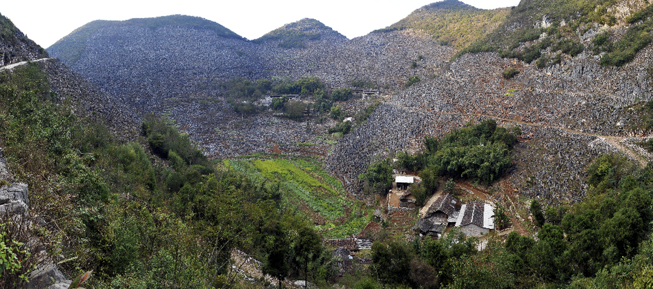 西疇縣是全省乃至全國石漠化最嚴重的地區之一,99.9%的面積屬于山區,石漠化面積占75.4%,生存發展環境極為惡劣。圖為1991年被石漠化包圍的村莊——西灑鎮么灑村委會大鄔麻村小組。(呂德仁攝)??