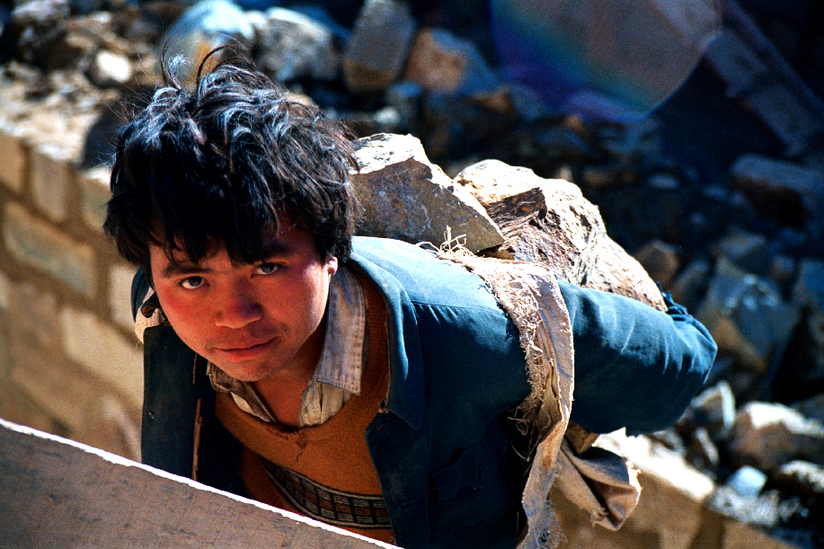 西疇縣人民為了擺脫貧困,要致富、先修路,與其等著看、不如自己干,不斷掀起修路熱潮。圖為1996年西疇縣蚌谷鄉程家坡村群眾大干農村公路建設。(呂興仁攝)