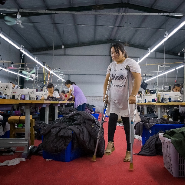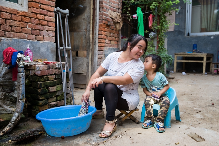 在呂陵鎮(zhèn)還有這么一個(gè)村民,黃菲菲,患有小兒麻痹,家有老人需要贍養(yǎng),還有個(gè)2歲多的孩子,丈夫也常年不在家。雖然她是貧困戶(hù),生活負(fù)擔(dān)這么大,但磨難壓不倒堅(jiān)強(qiáng)的她。為了讓孩子以后能生活地更好些,她來(lái)到扶貧車(chē)間打工。(楊科 攝)