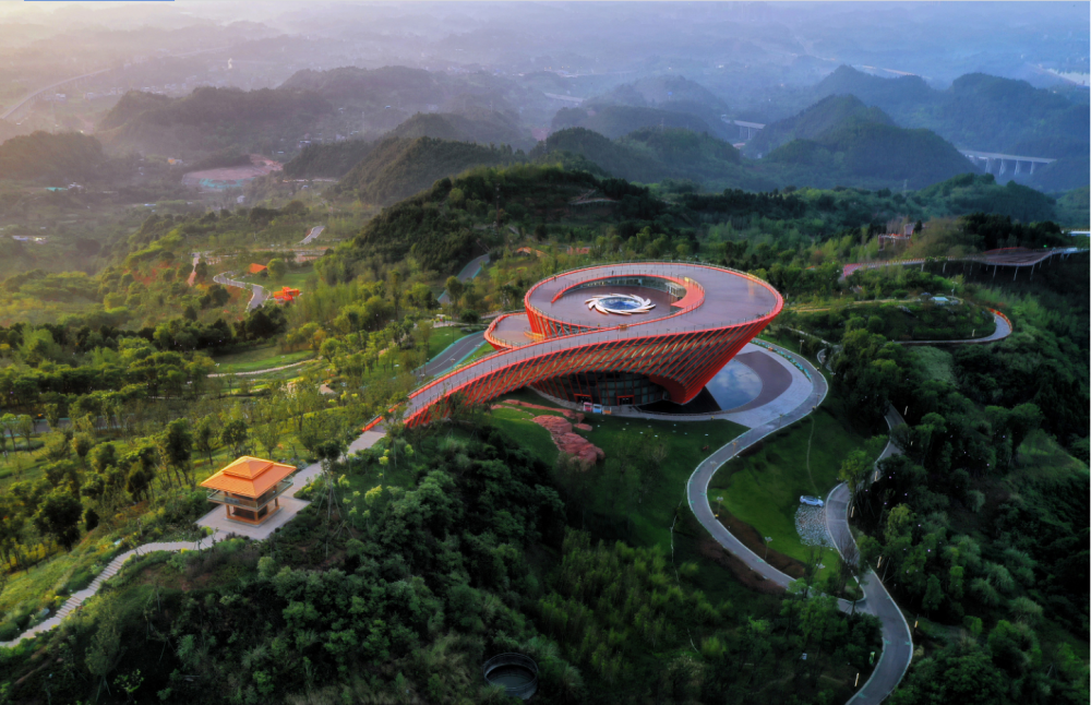 初秋的陽光映照下,遠處龍泉山連綿起伏,像一幅巨型扇面展開。在天府新區公園城市展示廳,工作人員向本刊記者重溫了成都建設公園城市的緣起。