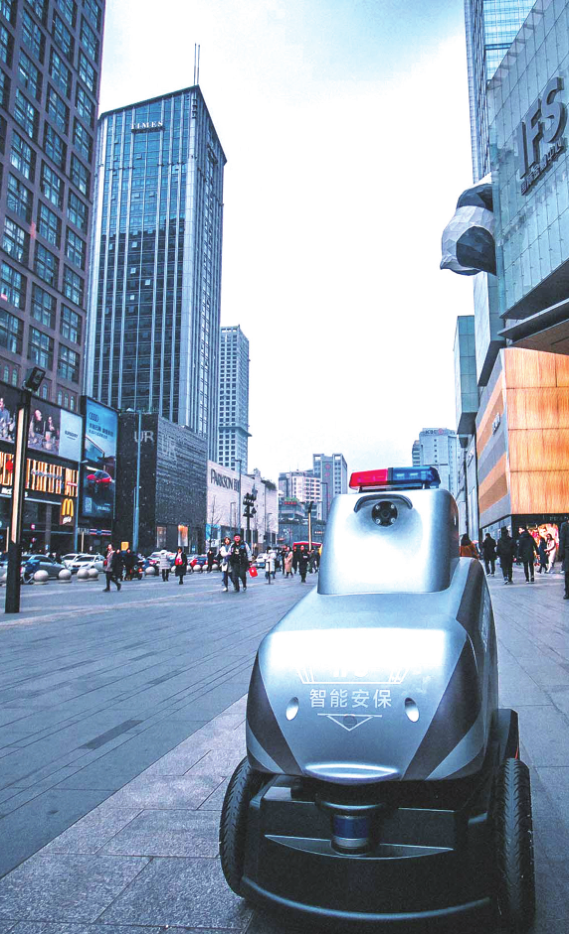 2019 年 1 月 10 日,在成都 IFS 廣場上,一個移動機器人在廣場上巡邏,遇見前方有行人便會主動避讓,尋找新的巡邏線路