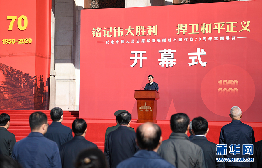 新華社北京10月19日電 “銘記偉大勝利 捍衛(wèi)和平正義——紀(jì)念中國(guó)人民志愿軍抗美援朝出國(guó)作戰(zhàn)70周年主題展覽”開幕式19日上午在中國(guó)人民革命軍事博物館舉行。中共中央政治局常委、中央書記處書記王滬寧發(fā)表講話并宣布展覽開幕。