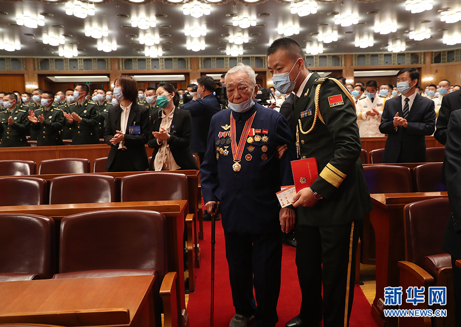 10月23日,紀(jì)念中國人民志愿軍抗美援朝出國作戰(zhàn)70周年大會(huì)在北京人民大會(huì)堂隆重舉行。圖為志愿軍老戰(zhàn)士、老同志入場。(新華網(wǎng) 翟子赫 攝)
