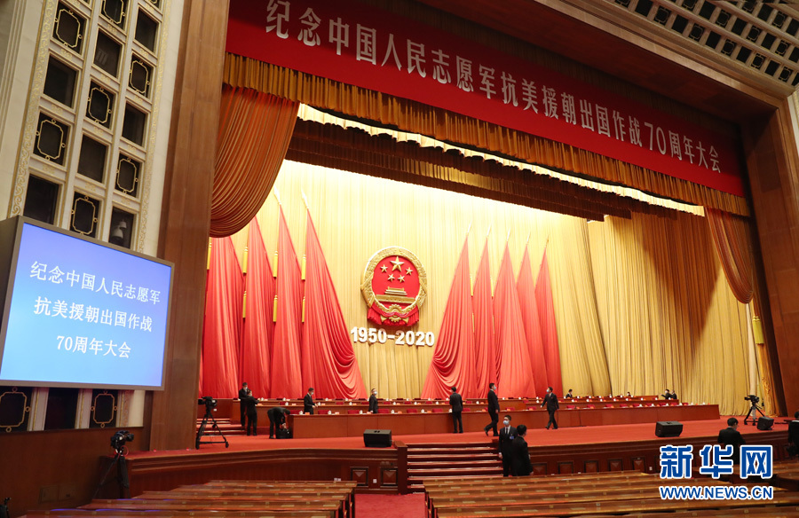 ??? 10月23日,紀念中國人民志愿軍抗美援朝出國作戰70周年大會在北京人民大會堂隆重舉行。圖為人民大會堂大禮堂。(新華網 翟子赫 攝)