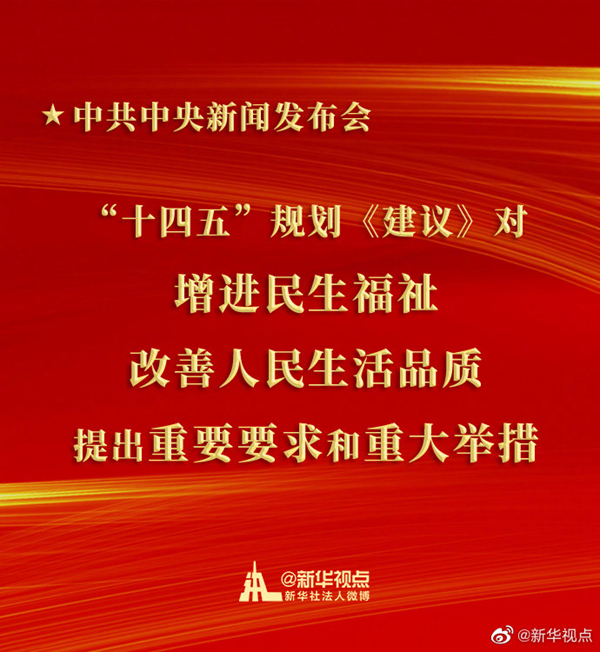 國家發展和改革委員會黨組成員、副主任,國家統計局黨組書記、局長寧吉喆說,“十四五”規劃《建議》順應億萬群眾的期盼,對增進民生福祉,改善人民生活品質提出了一些重要要求和重大舉措。在就業方面,將強化就業優先政策,擴大就業容量,完善重點群體就業支持體系,實現更充分更高質量的就業;在收入方面,將提高人民收入水平,多渠道增加城鄉居民收入,保持居民收入與經濟增長基本同步;在教育方面,將建設高質量教育體系,推動義務教育均衡發展和城鄉一體化,促進全民受教育程度不斷提升;在文化體育方面,將廣泛開展群眾性文化活動,廣泛開展全民健身運動;在健康方面,將全面推進健康中國建設,加快優質醫療資源擴容和區域均衡布局,使衛生健康體系更加完善;在養老方面,將實施積極應對人口老齡化國家戰略,促進人口長期均衡發展,健全基本養老服務體系;在社保方面,將健全覆蓋全民、統籌城鄉、公平統一、可持續的多層次社會保障體系。