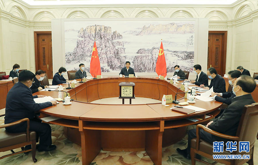10月30日,中共全國人大常委會黨組在北京舉行會議,傳達學習習近平總書記在黨的十九屆五中全會上的重要講話和全會精神。中共中央政治局常委、全國人大常委會委員長、黨組書記栗戰書主持會議并講話。 新華社記者 姚大偉 攝