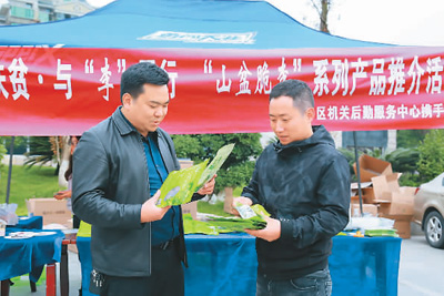 日前,貴州省遵義市匯川區山盆鎮黨委攜手匯川區機關后勤服務中心開展“消費扶貧”推介活動,將“山盆脆李”系列產品推向市場,果干、果酒的單日銷售額達一點四萬元。周 麗攝(人民視覺)