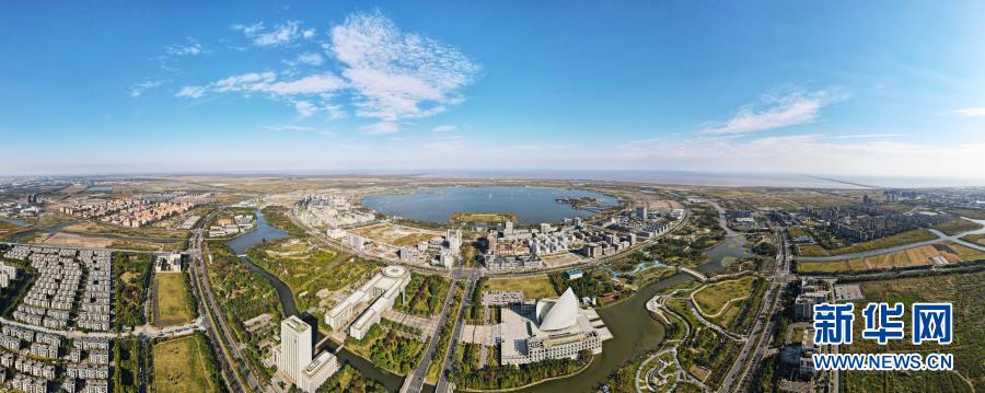 上海浦東新區(qū)臨港新城滴水湖畔(10月25日攝,無人機全景照片)。新華社記者 方喆 攝