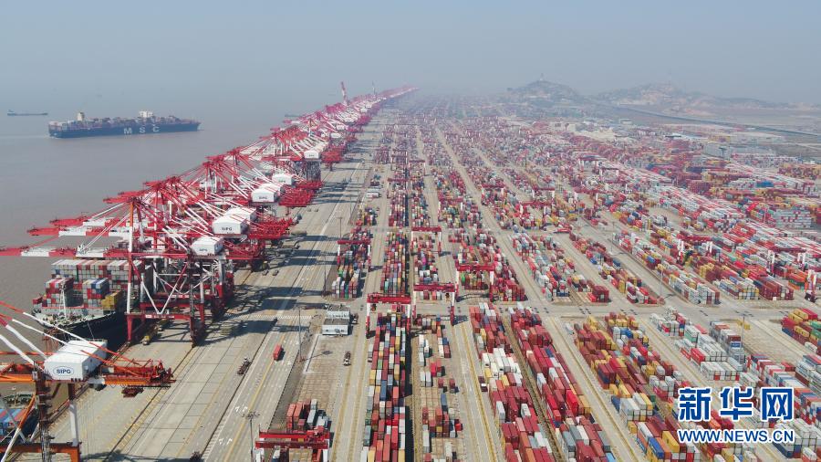 上海洋山港集裝箱碼頭(3月18日攝,無人機照片)。新華社記者 丁汀 攝
