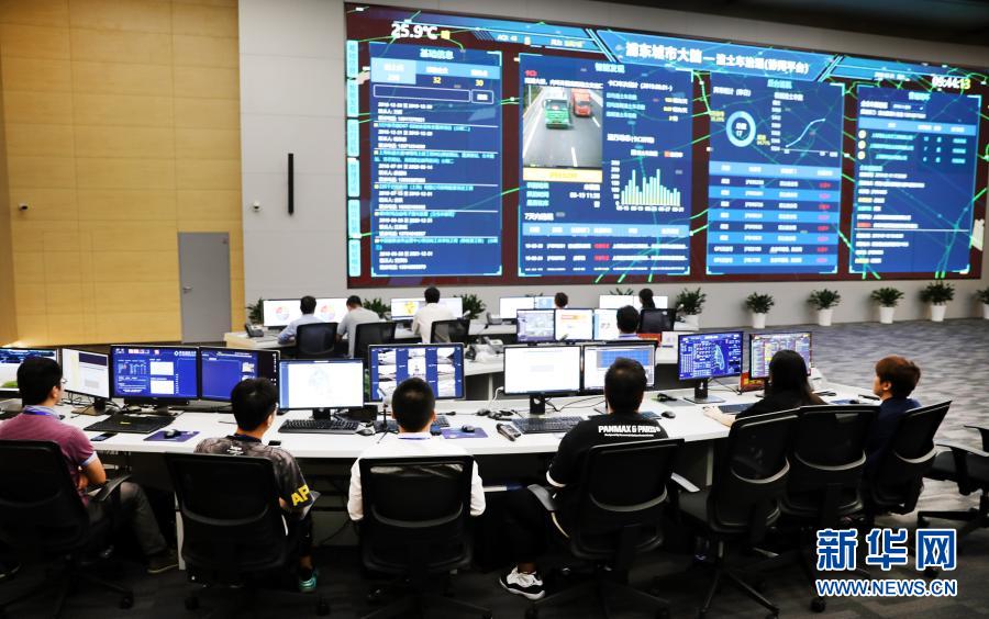 工作人員在上海市浦東新區(qū)城市運行管理中心內(nèi)工作(2019年8月31日攝)。新華社記者 方喆 攝