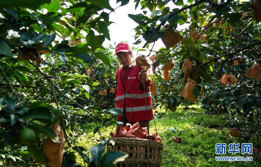 在四川省資陽市安岳縣石橋村,果農在采摘檸檬(11月11日攝)。新華社記者 周相吉 攝