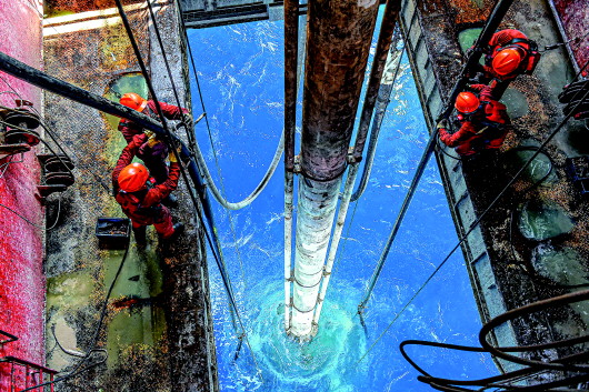 ▲工人在勘探三號上作業(yè)(7月27日攝)。圖片均由本報(bào)記者蒲曉旭攝
