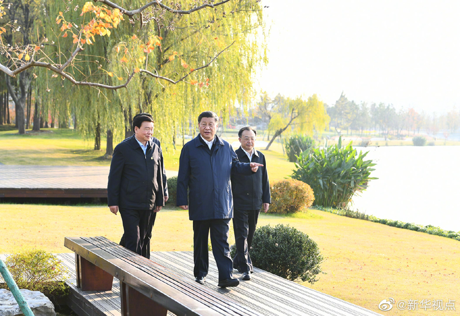 習近平總書記13日在江蘇省揚州市考察調研。他先后來到運河三灣生態文化公園、江都水利樞紐,了解大運河沿線環境整治和文化保護傳承利用、南水北調東線工程規劃建設和江都水利樞紐運行等情況。(文字記者:張曉松、朱基釵? 攝影:鞠鵬、謝環馳、燕雁)