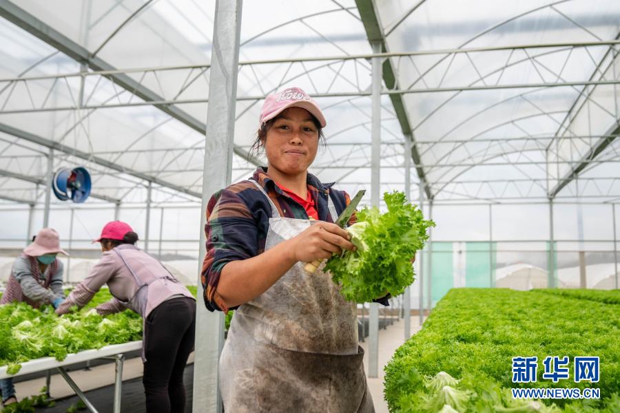 9月29日,搬遷戶徐開蘭(右)在會澤縣華泥產業扶貧基地采收蔬菜。新華社記者 胡超 攝