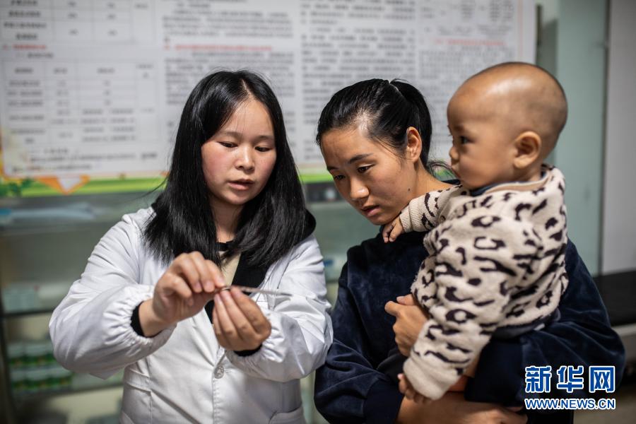 9月23日,搬遷群眾帶孩子在位于鎮雄縣魯家院子易地扶貧搬遷安置點的南苑社區衛生服務站看病。新華社記者 胡超 攝