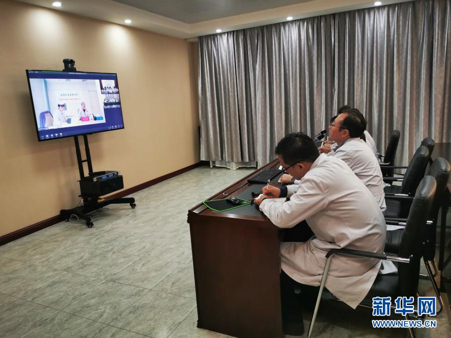 2019年10月25日,黑龍江省海倫市人民醫(yī)院醫(yī)生通過(guò)遠(yuǎn)程技術(shù)與外地專家一同進(jìn)行會(huì)診(手機(jī)照片)。新華社發(fā)