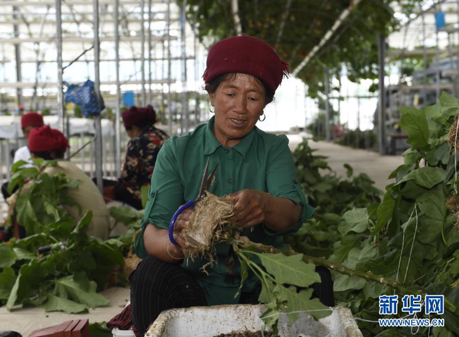 8月10日,四川省涼山彝族自治州昭覺縣四開鄉(xiāng)好谷村的阿爾衣呷在家附近的涪昭現(xiàn)代農業(yè)產業(yè)園內務工。新華社記者 劉坤 攝