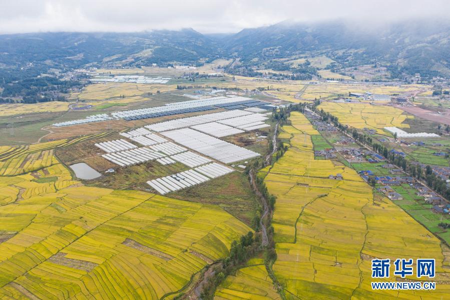 昭覺縣阿并洛古鄉(xiāng)的美麗田園和農業(yè)產業(yè)園(10月13日攝,無人機照片)。新華社記者 江宏景 攝