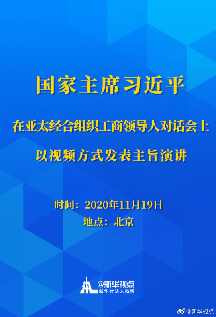 國家主席習近平11月19日在北京以視頻方式在亞太經合組織工商領導人對話會上發表主旨演講