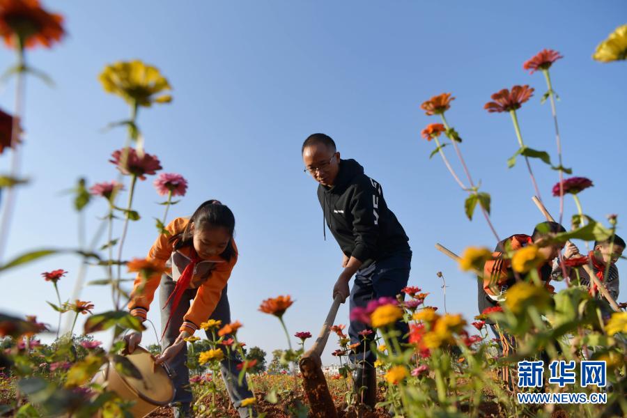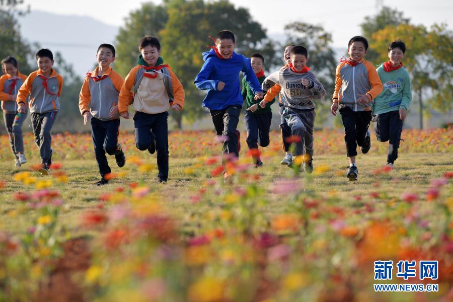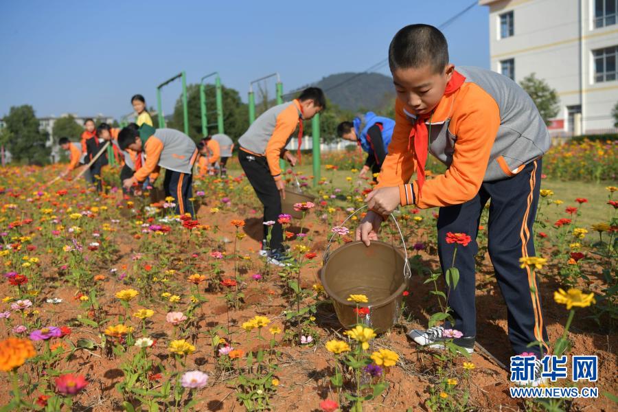 江西省宜春市袁州區(qū)寨下中心小學(xué)學(xué)生在花田勞動(dòng)(11月9日攝)。新華社記者 彭昭之 攝