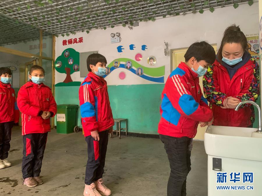 11月19日,在新疆阿克蘇市喀拉塔勒鎮(zhèn)尤喀克博孜其小學(xué),教師耿琴(右一)幫孩子們洗手。新華社發(fā)