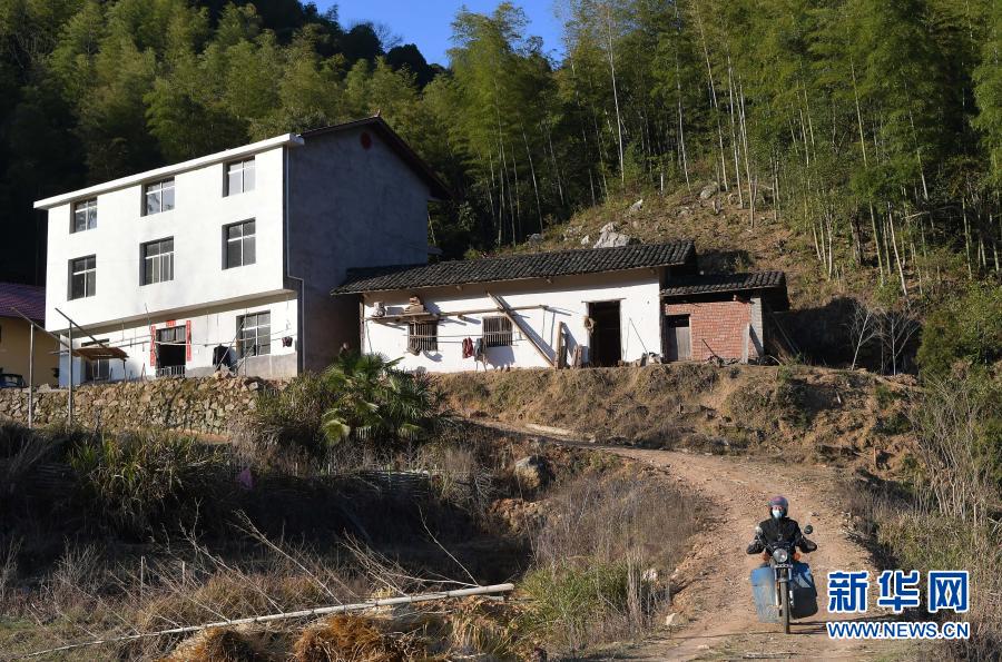 在江西省萬(wàn)載縣高村鎮(zhèn)新竹村,新竹小學(xué)的校長(zhǎng)羅長(zhǎng)石為學(xué)生郭仕錢(qián)送完課程之后繼續(xù)趕路,去下一家送課(2月17日攝)。新華社記者 彭昭之 攝