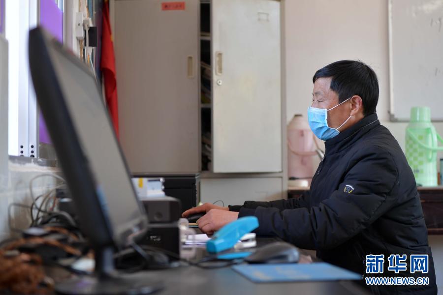 在江西省萬(wàn)載縣高村鎮(zhèn)新竹村新竹小學(xué),校長(zhǎng)羅長(zhǎng)石邊播邊錄當(dāng)天的線上教育課程(2月17日攝)。新華社記者 彭昭之 攝
