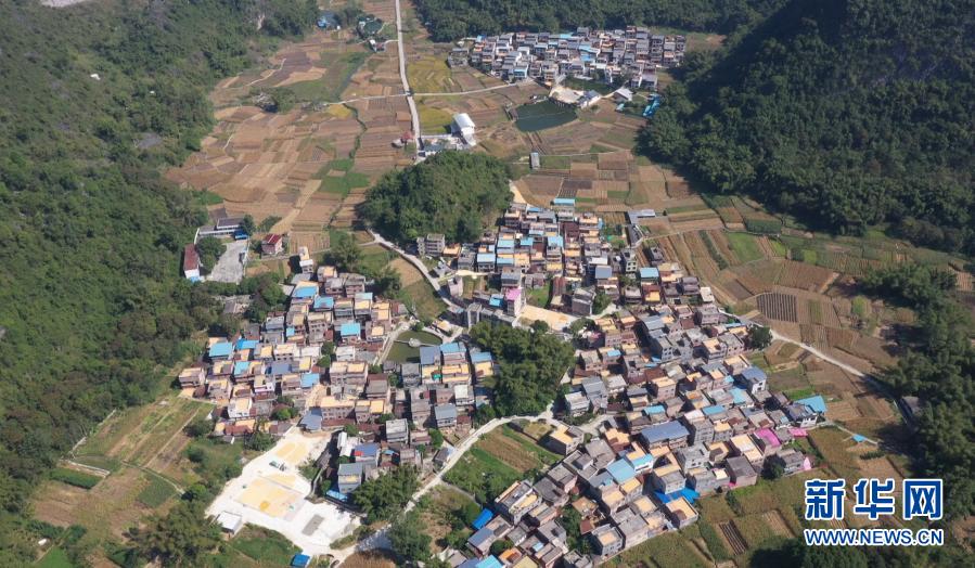 這是2019年10月16日拍攝的位于廣西隆安縣都結(jié)鄉(xiāng)隴選村后山上的原生水潭和地頭水柜(無人機(jī)照片)。新華社記者 曹祎銘 攝