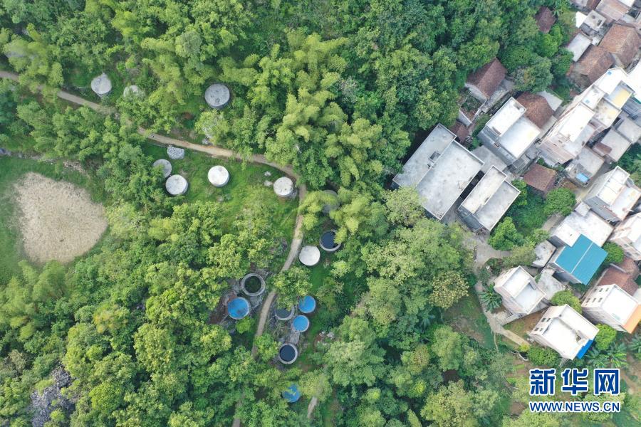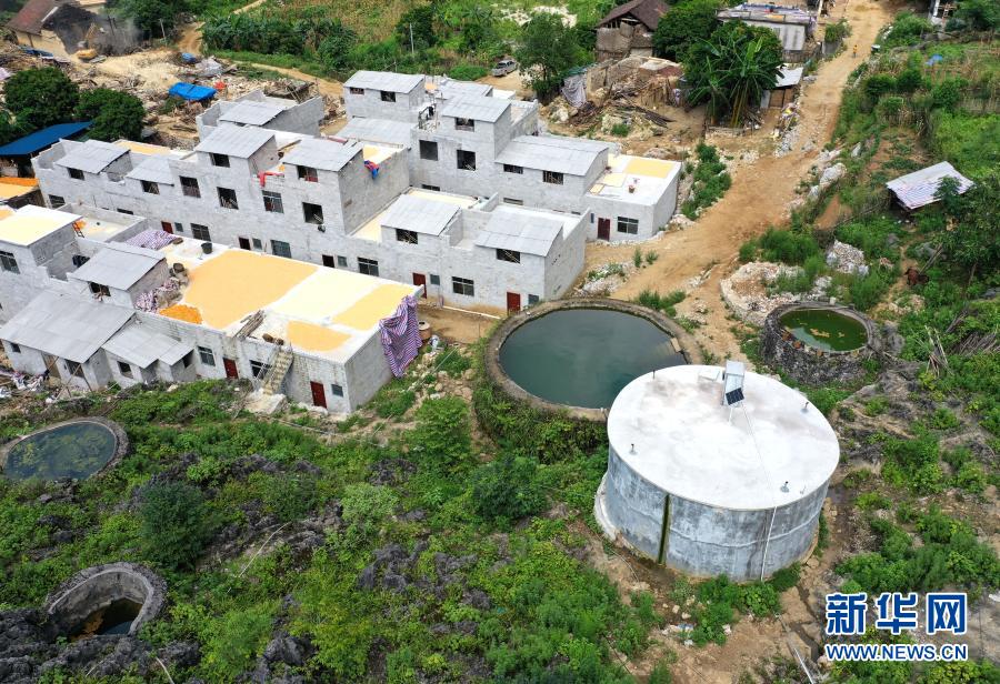 這是7月23日在廣西都安瑤族自治縣三只羊鄉(xiāng)雞峒村拍攝的水柜(無人機(jī)照片)。利用山石修建的第1代水柜、用水泥砂石修建的第2水柜以及第3代加蓋并配備抽水設(shè)備的水柜,見證了大石山區(qū)村民飲水的變遷。新華社記者 周華 攝