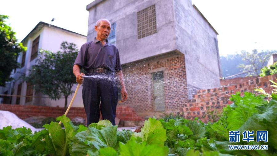 廣西隆安縣實施跨區(qū)域集中連片供水工程后,一名隴選村村民用自來水給菜地澆水(11月12日攝)。新華社記者 楊馳 攝