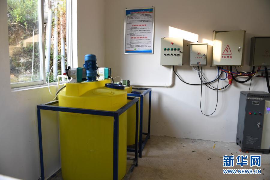 這是2019年10月16日拍攝的廣西隆安縣南圩鎮(zhèn)愛華村人飲工程的凈水設(shè)備。新華社記者 曹祎銘 攝