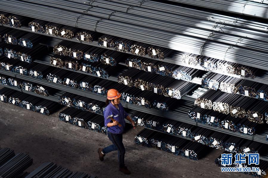 11月17日,福建省三明市三鋼集團的工人走過成品堆放區。新華社記者 姜克紅 攝
