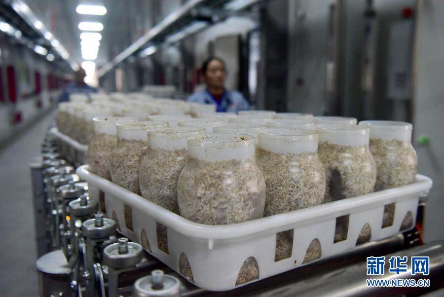 在自動化注射液體菌種后,一排排內部裝滿培養基的透明塑料瓶,通過空中傳輸帶,被送進能容納5萬瓶的出菇房,經自動抬升被整整齊齊地擺進10層貨架……這是記者在駐馬店市泌陽縣鮮菇坊生物科技有限公司看到的一幕。
