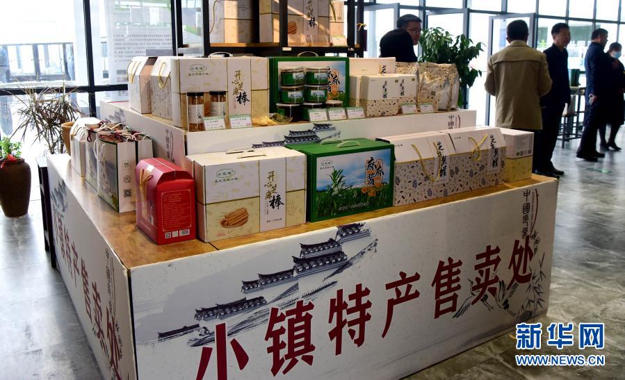 這是河南省駐馬店市平輿縣小鎮特產售賣系列產品展柜(10月28日攝)。