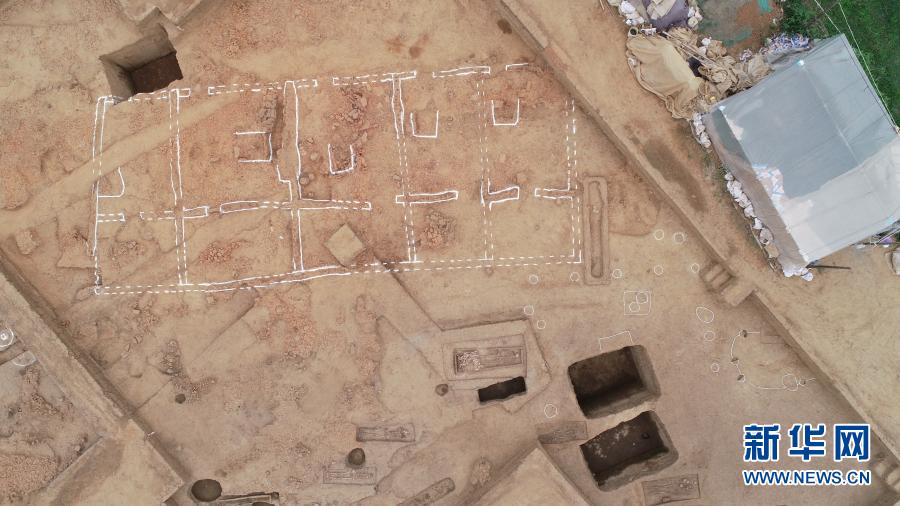 圖為河南南陽黃山遺址部分發掘現場航拍圖(2019年6月27日攝,無人機照片)。新華社發(河南省文物考古研究院供圖)