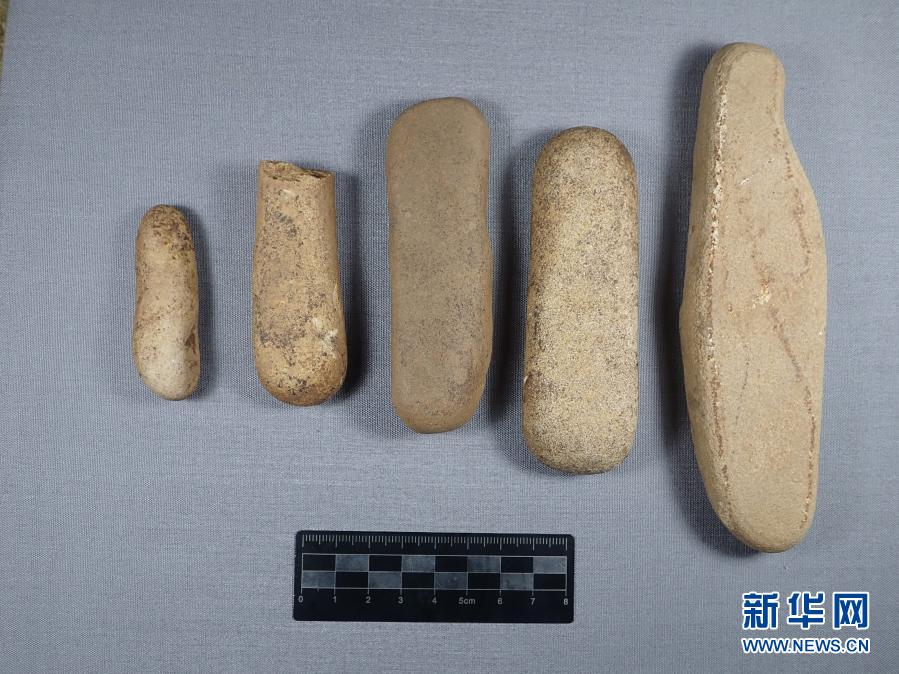 河南南陽黃山遺址出土的石質制玉工具——系列石銼(2019年1月8日攝)。新華社發(河南省文物考古研究院供圖)