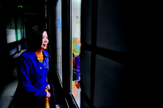 11月25日,蕪湖市盲人學(xué)校校長席蔚菁在教室外查看學(xué)生自習(xí)情況。新華社記者劉軍喜攝