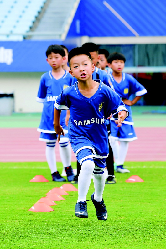 圖3:南京小球員學(xué)習(xí)足球基礎(chǔ)技能。新華社記者李博攝