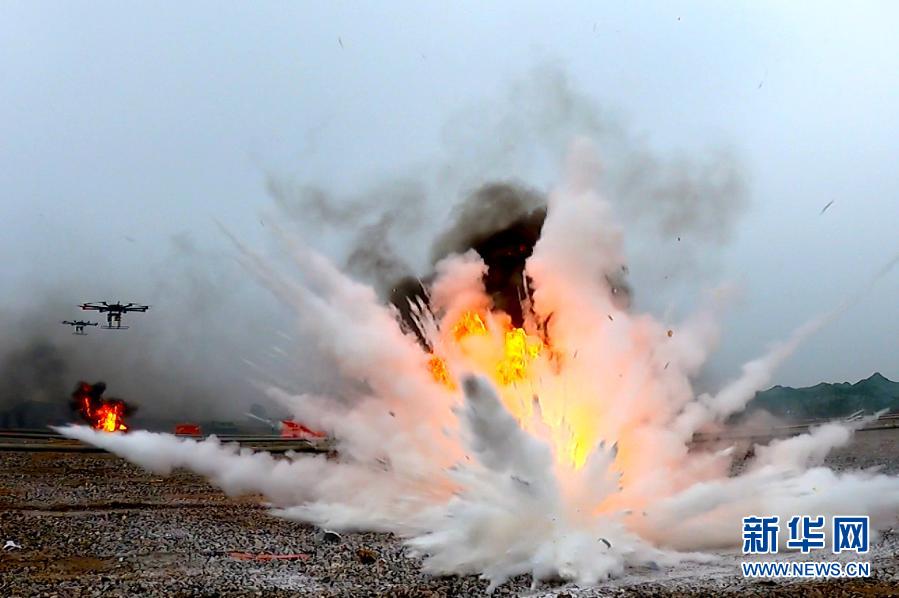 油料保障隊組織參賽隊員進行無人機滅火作業(12月1日視頻截圖)。新華社發(呂冀周 攝)