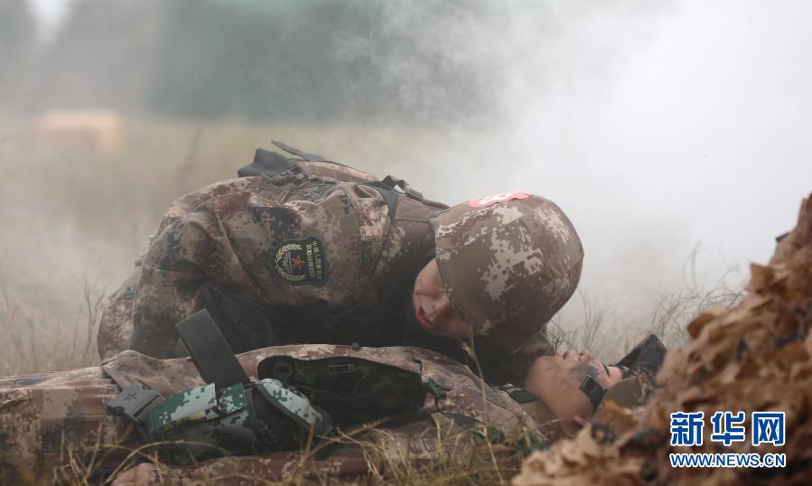 衛勤專業參賽隊員在進行戰場“傷員”急救(11月29日攝)。新華社發(武一明 攝)