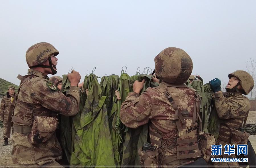 宿營保障隊參賽隊員在搭設野戰宿營帳篷(11月30日視頻截圖)。新華社發(呂冀周 攝)