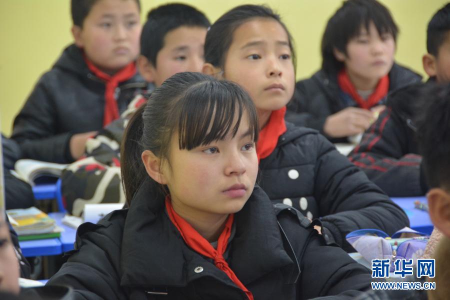 12月1日,在廣河縣三甲集鎮火炬小學,東鄉族女孩馬梅(前排)正在教室內聽講。新華社記者顏之宏攝