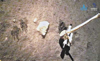 在月面超過100攝氏度的高溫考驗下,它克服了測控、光照、電源等方面的條件約束,舒展長臂,高高舉起了挖土鏟……