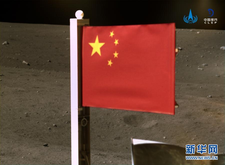 新華社北京12月4日電(記者胡喆)旗開月表,五星閃耀。經過科研團隊的數據接收和處理,4日下午,國家航天局公布了探月工程嫦娥五號探測器在月球表面國旗展示的照片。這是繼嫦娥三號、四號任務后,五星紅旗又一次展現在月球表面,同時也是五星紅旗第一次月表動態展示。