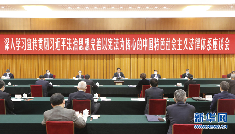 今年12月4日是第七個國家憲法日,全國人大常委會辦公廳會同中央宣傳部、司法部在京召開“深入學習宣傳貫徹習近平法治思想,完善以憲法為核心的中國特色社會主義法律體系”座談會。中共中央政治局常委、全國人大常委會委員長栗戰書出席座談會并講話。新華社記者 劉衛兵 攝